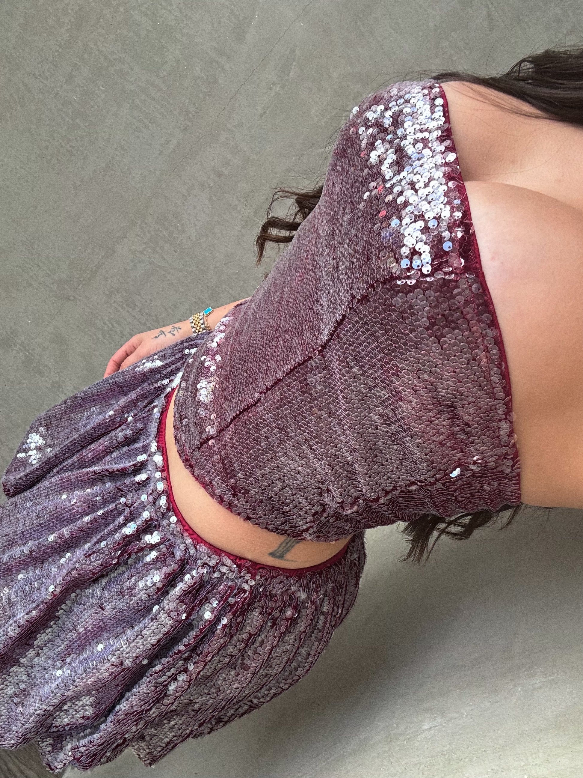 Burgundy Sequin Bubble Skirt Set