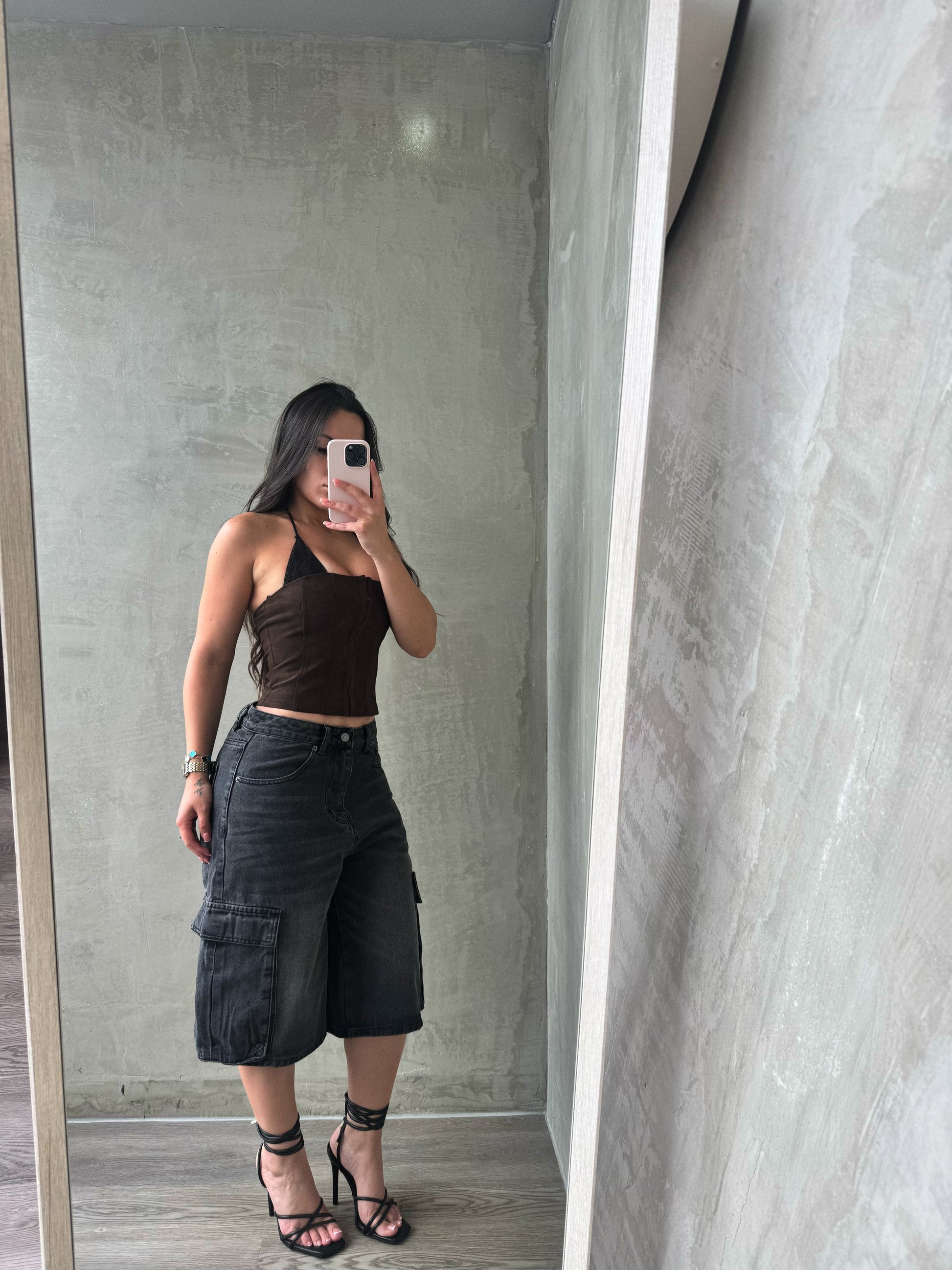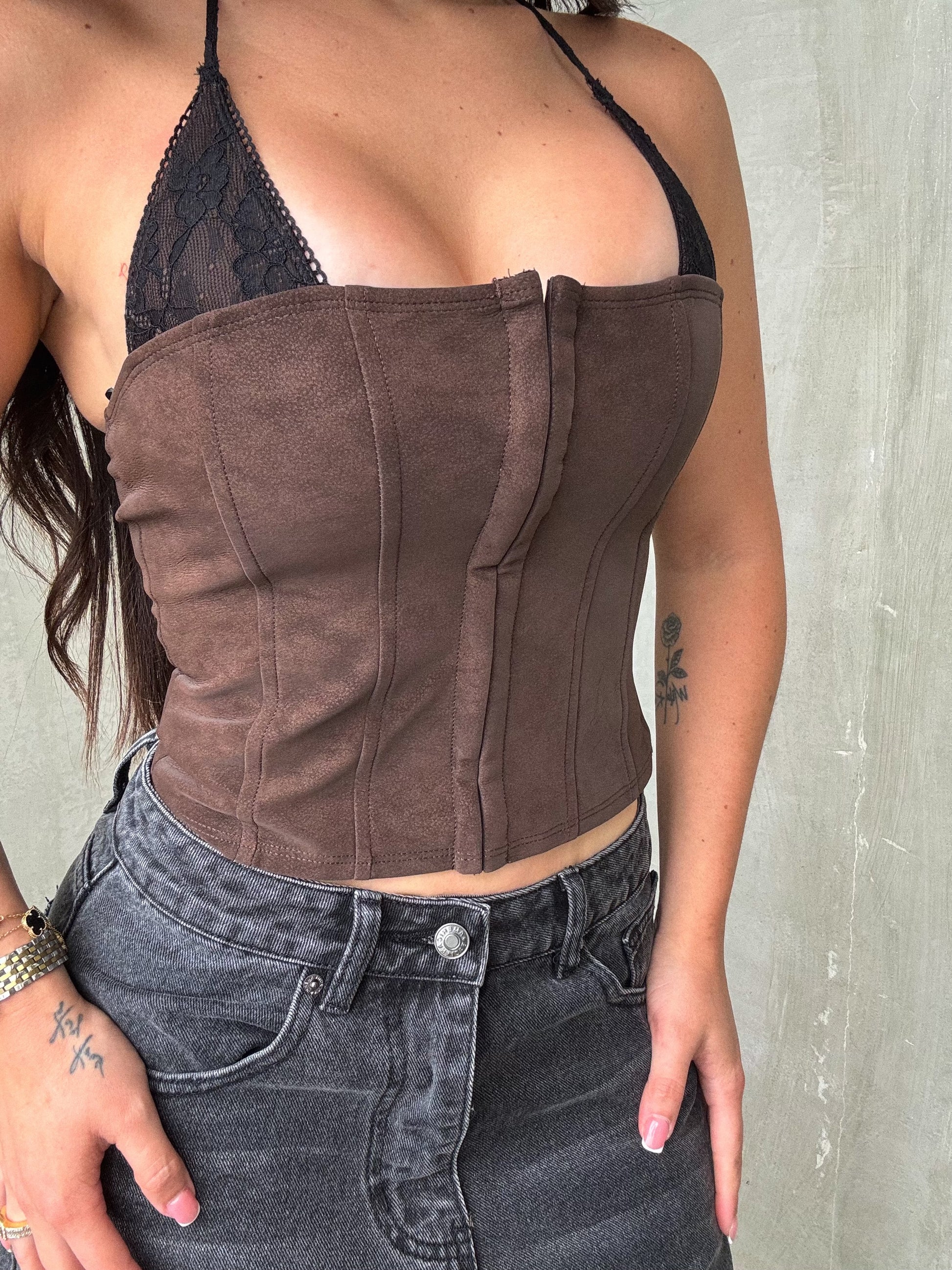 Chocolate Bustier With Black Lace Bra